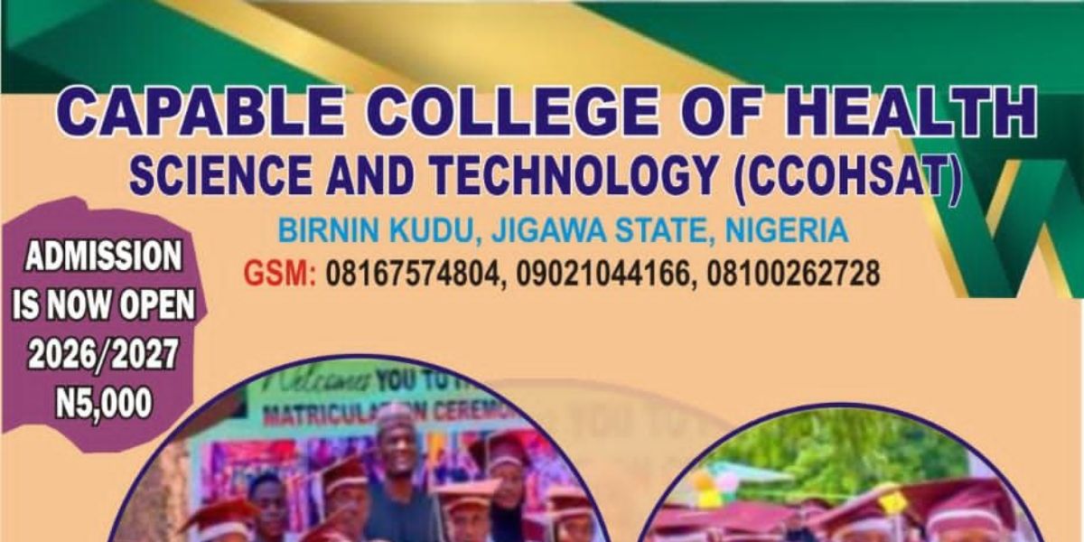 The Capable College of Health Tech, Akungba-Akoko (AAUA), Birnin Kudu, Jigawa State, invites applications from qualified candidates for its “Set One (1)” academic programmes for the 2026/2027 academic session.