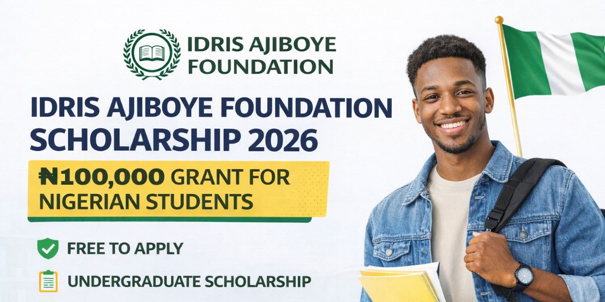 The Idris Ajiboye Foundation Scholarship awards a ₦100,000 fund to selected undergraduate students enrolled in accredited institutions and living in Nigeria